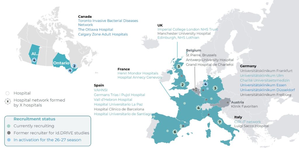 id.DRIVE’s Study Contributors network consists of 26 Study Contributors (Study Sites) including 57 hospitals from 8 different countries: